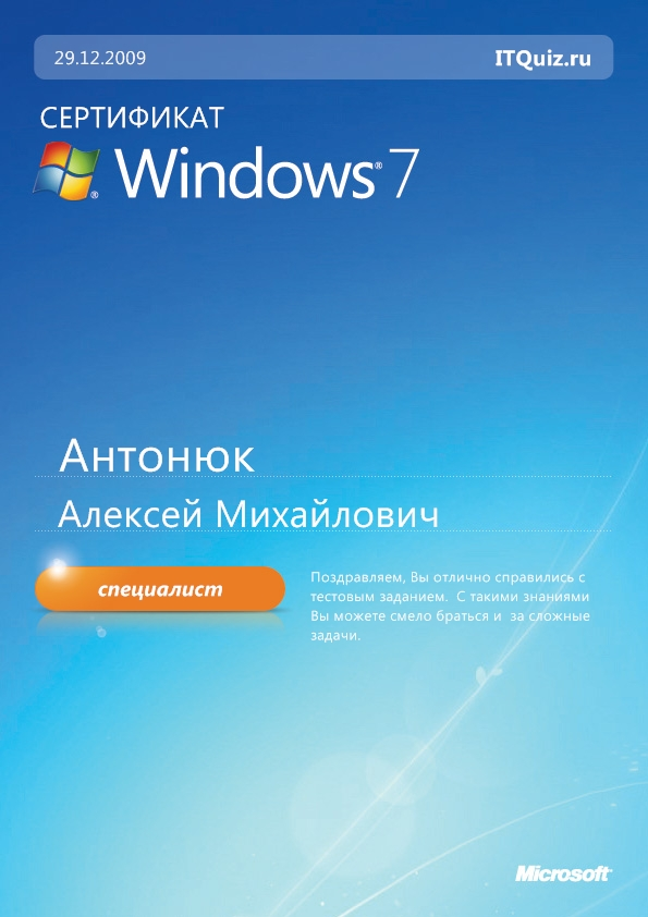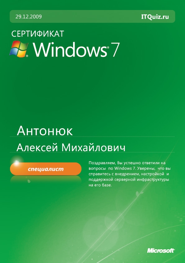 Специалист Windows 7 (Простой тест)